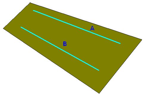 Las rectas A y B son paralelas. Las vías del tren son paralelas. En todos los puntos, las distancias entre ambas líneas es siempre la misma.